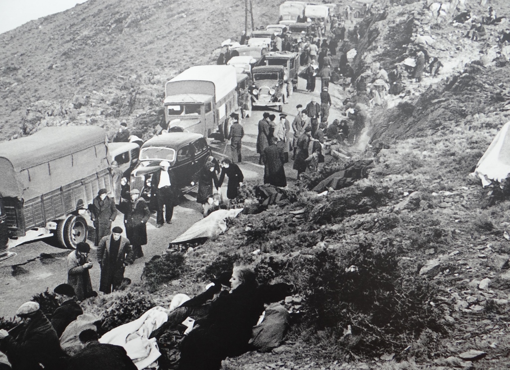 More signs illustrated what took place once Franco finally crushed the Catalans: exodus. About half a million people fled, or tried to. The border remained closed for a while and people waited along the road where we were parked. Eventually they were allowed through. 100,000 of them ended up in the French concentration camp at Argelès-sur-Mer. France was completely overwhelmed by the scale of the refugee crisis.