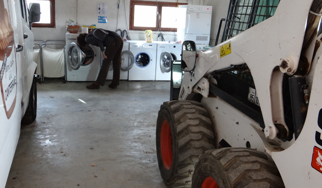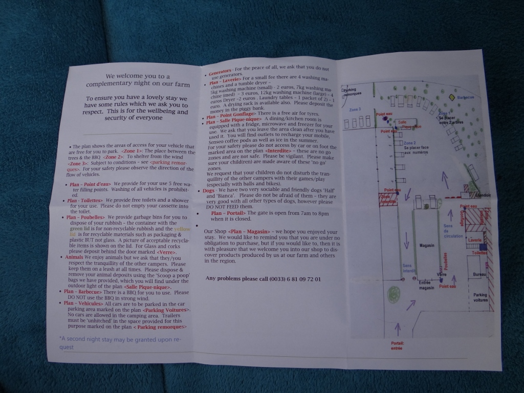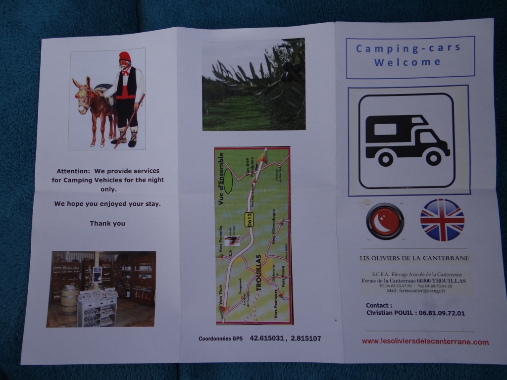 Where’s ‘here’? We’re at La Ferme de al Canterrane, which grows olives, and presses them into oil. They provide a cracking motorhome parking area on the vague assumption you’ll buy some of their stuff (if you know the France Passion scheme you’ll know what I’m on about). It’s a win-win situation. As we arrived one of the family nipped out and handed us a leaflet in English explaining where all the facilities are: parking, the laundrette, kitchen, shower, toilets, water, tyre air, loo emptying spot. Sweet!