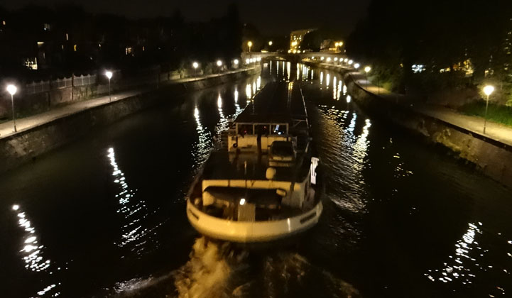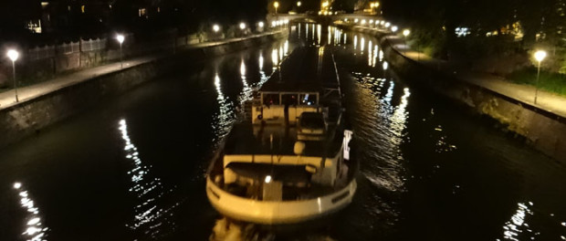 With a flat nose poking a tiny bit into the road, and a bike-rack-butt encroaching onto the cycle path behind us, we had inadvertently parked right in the centre of Namur last night. Passing cars rocked the van, even those not trying to break the sound barrier. Barges churned the murky waters behind us as their improbably-large hulks shoved along the water. Revellers piling out of an early morning mini bus might as well have been in the van with us, hugging us and uttering ‘I love you, man’ (Je t’aime, homme?) as they tottered off home. Sleep came with exhaustion, and we exploited our fabulous parking situation this morning, paying just €1 to extend our free kip until midday as a horde of motorists eyed up our spot.