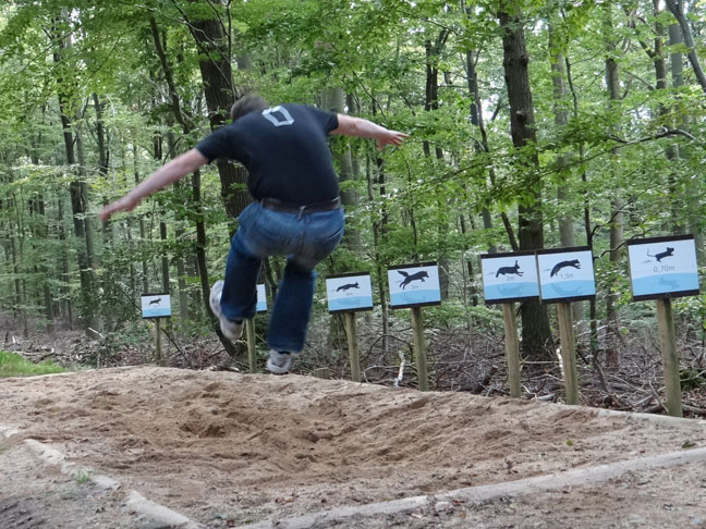 The photo above tells all about our current location. It’s silent here, the water is still, the air is cool and calm, it feels safe, but for the ‘hunting season’ and ‘look out for wild boar’ signs everywhere. On a marked 2km amble through the forest we played with our new camera, chasing fleeting woodpeckers and launching ourselves into a man-versus animal long jump competition. It’s a flippin’ awesome gadget and we’re having a ton of fun with it.