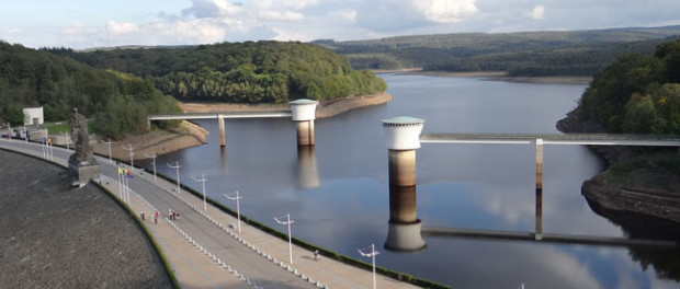Dave the motorhome is enjoying a peaceful afternoon, backed into a curved corner of a flower-full refurbished dam parking area at the Barrage de la Gileppe (N50.58915 E5.97076), east Belgium. We’re inside the High Fens (Hautes Fagnes) natural park, close to the German border. Although the odd sign is in German, everyone speaks French, so we’re not quite in the German-speaking bit of Belgium.