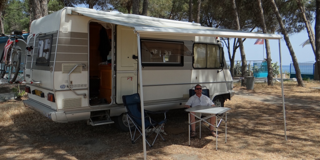 Stomachs full we packed up Dave and headed the 3km south to the campsite, parked up in the shade, rolled out the awning, and flopped down into our camping chairs. It’s now nearly 8pm and two loads of washing have been done, the bed has been stripped, Charlie has been for several plays on the beach, we’ve bumped into a couple we met on a beach on the other side of the Peloponnese and we’ve Skyped my parents. Tomorrow there is more washing to do, but mainly relaxing, after all it’s a Bank Holiday here too!