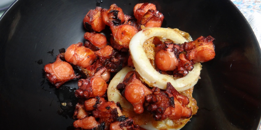 The pasta aisle was heaving and took several minutes to get through, but eventually we’d been up and down every aisle, Jay with a notepad jotting down prices – something we really should have done when we first shopped here! The queues at the tills moved slowly, but eventually we made it out and back to Dave for some more frieezer fodder – lunch today was Octopus and Squid with bread (for me, mainly bread).