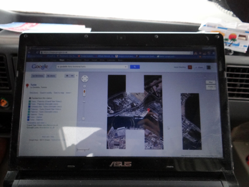 Dave the motorhome is at the ferry port in La Goulette, right next to the water, ready for a front row view when our ship finally docks (N36.810062 E10.300772). We’ll be so glad when we’re finally on the ferry and tucked up in our cabin.