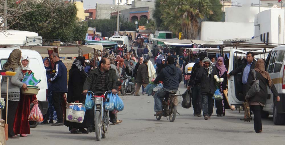 One of the towns which did make the Michelin map as we rounded in on El Jem. Amazingly, people part like the Red Sea.