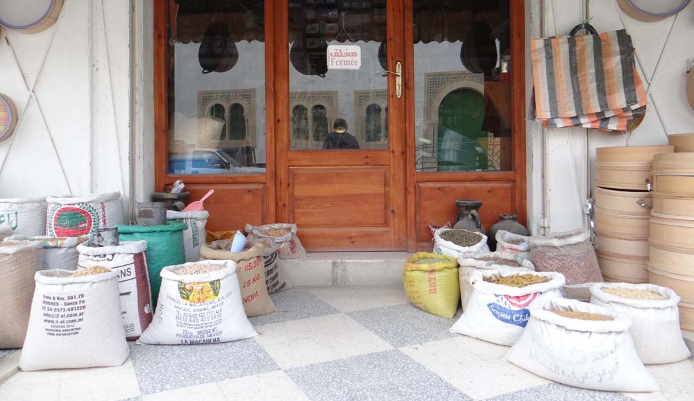A closed shop in El Jem. Everything’s left outside. Market stalls routinely throw a cover over things when they close.