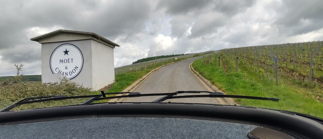 Instead of stopping in Epernay again, we returned to another favourite motorhome aire in the small champagne village of Mutigny. We’d headed here in 2017 to help our pooch Charlie avoid the Bastille Day fireworks – he was a very pampered pooch. The free aire looks out across rolling hills of vines and is only a kilometre walk from Avenay train station.