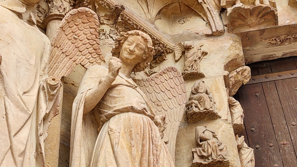 We then spent a lovely afternoon strolling around the streets of Reims. We wandered around the main attraction, its famous Cathedral, Notre-Dame de Reims, where 31 Kings of France were crowned. The Cathedral was badly damaged in 1914 and originally plans were to keep it in that state, however they were overruled and it’s been in a state of continual restoration since then – funded by the French state, with the Catholic Church being given exclusive use.