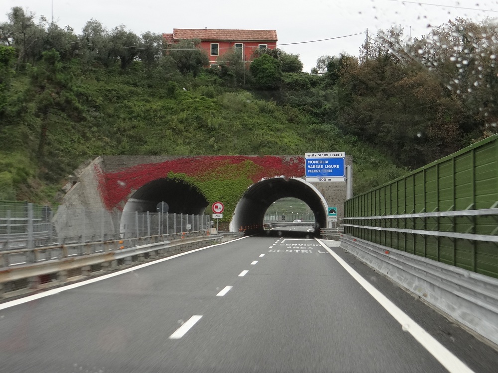 We came out of Genoa yesterday feeling like we’d miraculously emerged unscathed from a full-on spin in a washing machine. The relief at parking up last night washed over us, along with the best part of a box of Lidl red wine. To save our livers from further abuse today, we took the autostrada from Camogli to La Spezia (€9.70 in tolls). I hesitate to call the autostrada a motorway. Despite the obvious engineering masterpiece of it all, as it pokes holes and stands on stilts, through folds of wooded mountain side like a needle through a crinkle-cut crisp, it’s an ugly bypass at best. Half the time you’re in a tunnel, and when you’re not you’re in semi-permanent roadworks. Only the familiar yellow lines and warning signs give any indication some work might, at some point, happen on the crumbling patched-up two lane road. Despite passing through miles of 60kph section (yeah, right), we saw all of about 10 workers and zero heavy machinery moving. Someone call the Cone Hotline!