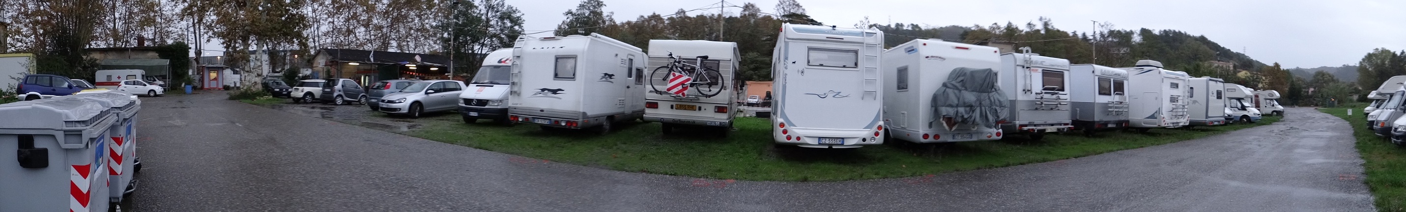 The official sosta for motorhomes in La Spezia, shared with the local ambulance force it seems. At this time of year, it’s a miserable place to be.