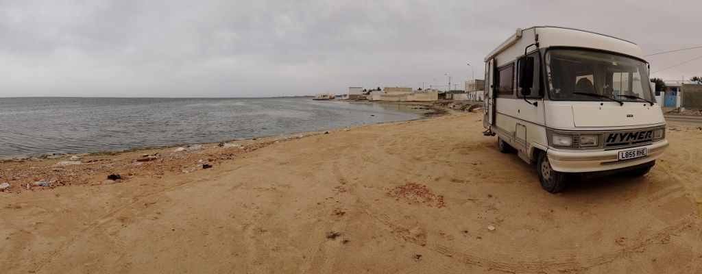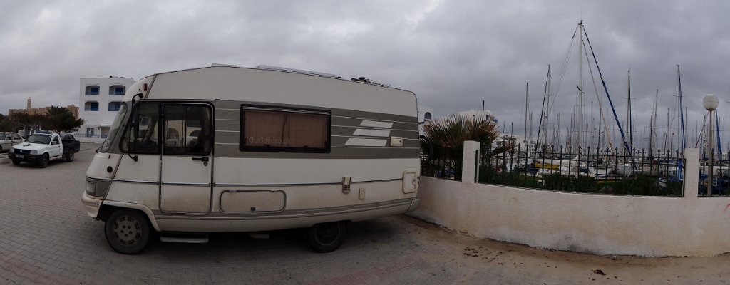 Dave the motorhome has a sea view out of his windscreen, Monastir Ribat is visible from his passenger window and behind him is the marina of Monastir filled with expensive French and Italian yachts. We’re parked in a car park of the marina Monastir apartments (N35.77857 E10.83373), their security guard was happy for us to stop here for only 5TD (€2.50) a night.