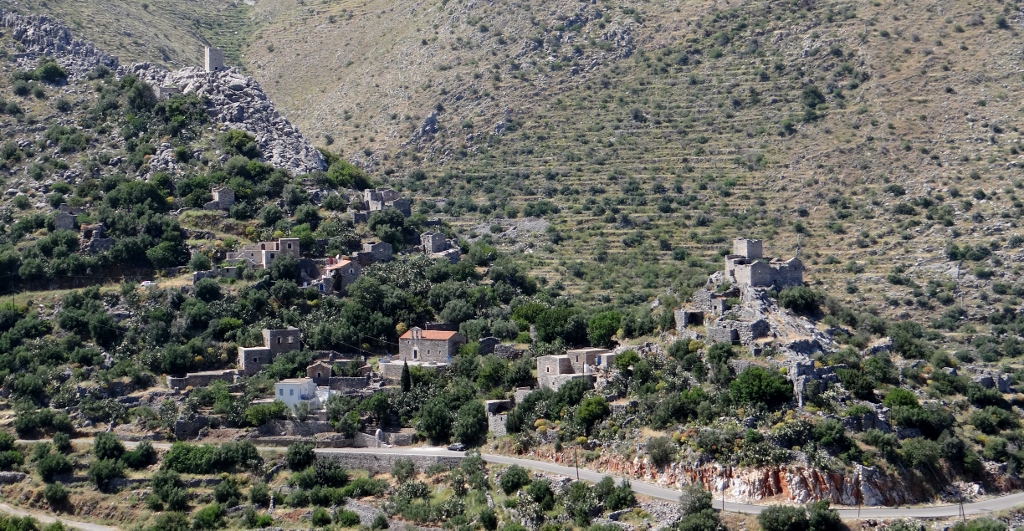 Layia interested me, the multi-towered village perfectly exemplifies the feudal ways of the Mani in years gone by. Four families lived here, each in their own independent settlement, each with its own church. You could clearly see where each of the settlements were and the space between them despite them all being the same village. As we drove through – hangovers and hot sunshine don’t make for sightseeing – I searched for the tallest tower, our guidebook says the locals claim it was built overnight by four hundred from one clan hoping to gain an advantage at sunrise, I can only assume their neighbours had hearing problems!