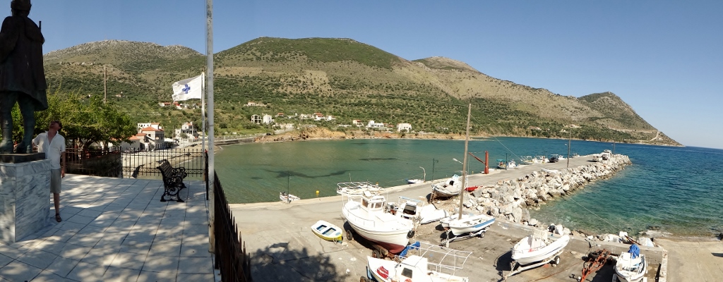 Reaching Kotronas we pulled in and filled up with water from one of the communal taps (a red top indicates that it’s drinking water – always handy to know). A man wandered past and said it was OK to fill up down on the quayside, the water tasted good there, we hoped what we’d just put in our tanks would be OK too! He then went on to tell us that it was OK to sleep there too – in fact a motorhome was already in place on the end of the quay. I always sleep so much better when a random stranger, who I’ll probably never see again, says it’s OK to sleep somewhere!