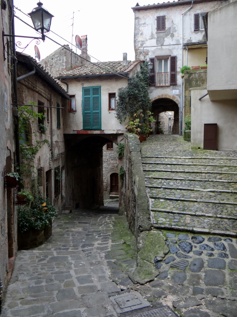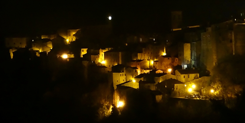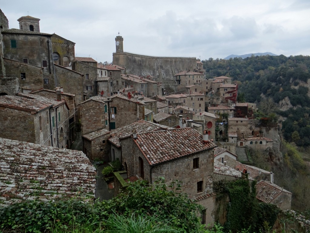 Jay cooked us up a treat of fancy thick spaghetti stuff (which will have one of seemingly hundreds of names that there are for pasta here) along with some dried vegetables he bought in the bio-market which in their packet mostly resembled pot-puri. The end result was really tasty though – these Italians know their stuff. After lunch we donned our coats as the sky turned grey and headed into town. The images we’d seen of the place on google showed a red/brown miss-match of square houses clinging to the side of the cliff over a narrow gorge, but we were on the town side, so had to imagine the view from across the valley.