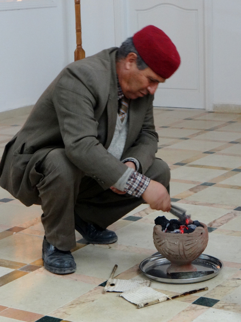 The conversation flowed in topic, volume and language. We were sat opposite Enzo and Maria-Rosa and it was great to see their passionate hand gestures accompanying their words – I didn’t realise how much I’d missed it. Sat on the bar in the restaurant were three Chicha pipes, standard fare for any self respecting cafe or restaurant here in Tunisia. Jay asked around if anyone had tried them or not, and before we knew it four were being prepared for us for after dinner.
