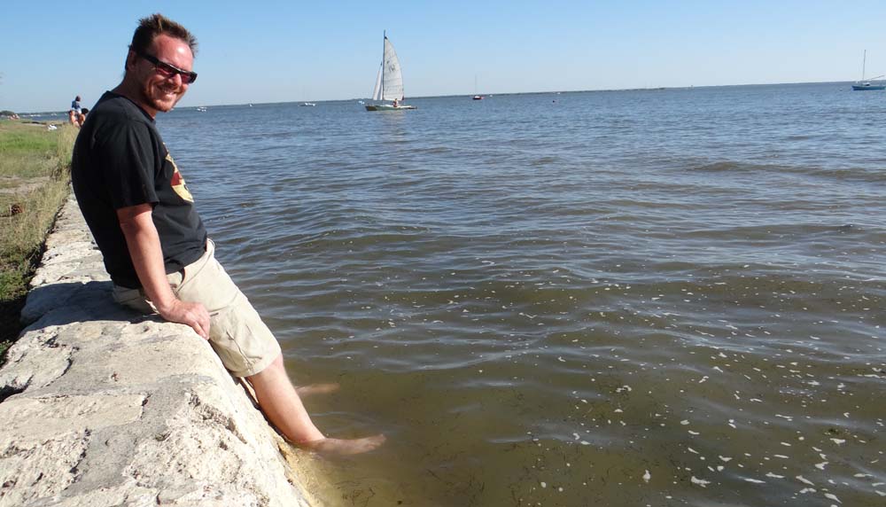 By the time Jay woke up I was in a foul mood, I hate writing about myself (OK, not so much writing about myself but trying to sell myself – which is odd seeing as I worked in marketing for a couple of decades!). Once again the CV was put to one side and after breakfast we went for a walk around Taussat. There was a small market going on selling mainly foodstuff. We were drawn over to the ‘Artisanal’ beer stall, but soon repelled by the €5 price tag on the bottle – they weren’t even a litre!