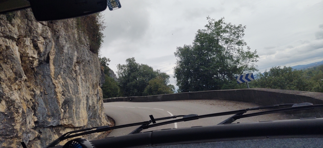 While it can be done in a day on the rapid French toll roads, it’s taken us almost a full week to drive our motorhome down to the Alps. Well, almost the Alps. We’re parked on a Camping-Car Park aire in the village of Virignin, about a 30 min drive from Aix-Les-Bains and Chambéry. The really high mountains are to the east and south of us, accessed via fast valley roads and more sinuous routes up along their slopes, another hour or two away.