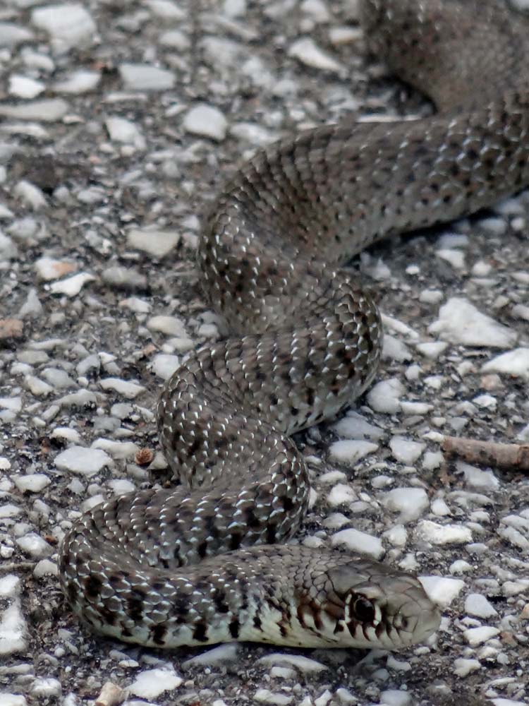 About a meter long, but not venomous (at least I think not) as it’s not an adder. It was flipping’ speedy mind.