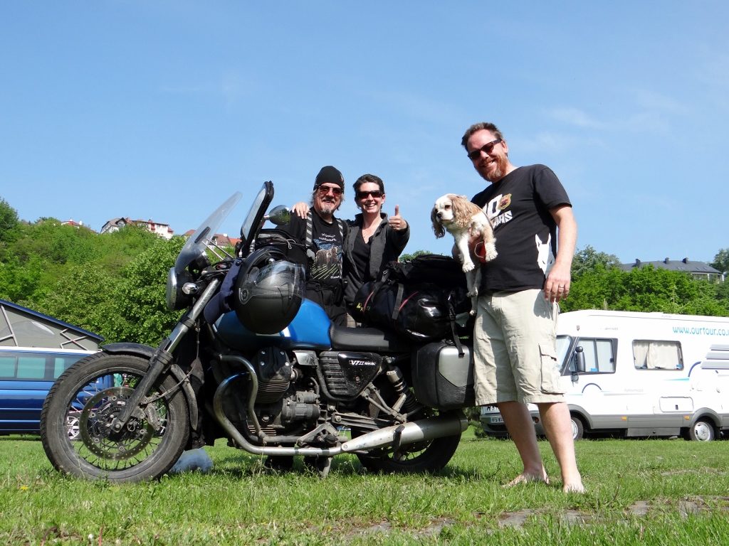 Also on the site was a German chap on a motorbike. Travel and motorbikes, of course Jay couldn’t resist nipping over to chat to him. Roland joined us in the laundry drying zone as we cracked open a bottle of rather dodgy Croatian wine. Luckily we have a bottle of Cassis in the cupboard for such emergencies and soon the rough white was a sweet pink tipple. It was fascinating talking to Roland who at 55 had given up his job to take long adventures on this bike – he was on his way home from Greece this time. As we discussed the finer details of road conditions in Albania a Swedish registered Land Rover pulled in and set about putting up its roof tent. Jay was now in seventh heaven.