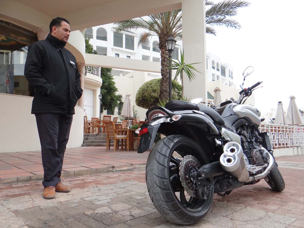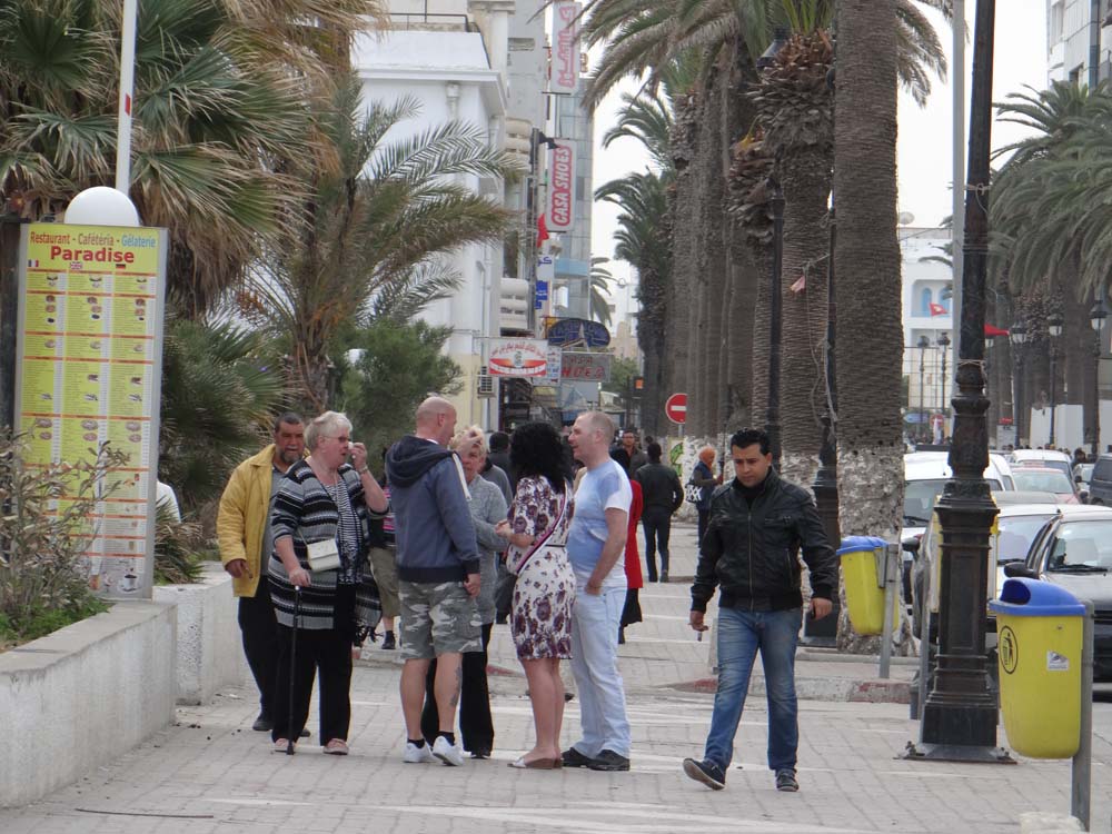 Tunisia has these weird areas called Zone Touristiques. They’re miles away from anywhere. The feeling seems to be that tourists will only want to come and stay in an all-inclusive hotel, not venturing into town, unless maybe they’re on an organised excursion. A couple of times Brits have bemoaned this to us: we’re in the middle of nowhere, there’s nothing around us, nothing to see or to do in the evening. On the other hand, you can get a week here, including flights, all-inclusive, for £300 a head. Incredible. Enough folks are taking advantage of it that the place is swamped with hotels (rough to seriously swanky), bars (what an amazing sight to see blokes in vests sat in the sun drinking pints of beer in the centre of an Islamic town while the call to prayer rings out at mega-volume) and a vast range of eateries and tat shops.