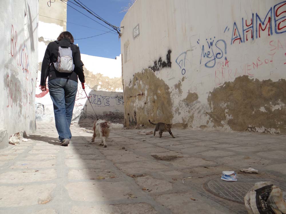 Sousse is a shock to me. Last night we went out and after some shifty questioning of door guards and restaurant owners we found the Rose and Crown. I was after a pint, although I imagine someone seeking out cocaine for the first time may have felt the same as we did seeking out Tunisian lager. We finally found the place, much like the kind of Irish pub they build in airport lounges, a wooden bar, ageing green zebra print seats, English football club flags stapled to the ceiling, unwatched flat screen tellies and blaring Bonnie Tylor. Disinterested staff poured me a 66cl (pint) of Tunsian lager, Ju had a glass of rose wine. We sat feeling naughty and illicit, drinking and eyeing up the other punters, a mix of locals and Brits. Outside an Italian-quality gleaming gelatarie, a club styled as a Texan ranch and a pulsating underground club topped off the other-worldliness of it all (we bypassed the last two – far too old for all that!).