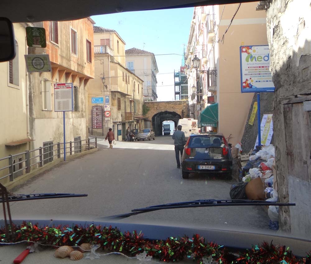 The A3 motorway here is toll-free, and we fancied a break from the coast. Italian roads in the south have a poor reputation, but we pulled into a brand new section, with enough armco to keep Chinese construction in metal for a year. As we passed the frequent evidence of crashes into it we wondered whether the additional armour was there as they knew they’d not have the cash later on to repair it! Quickly the new road flipped into a more familiar colour scheme, the yellow lines of the European Semi-Permanent Roadworks. For once these actually had people working in them, but only perhaps 30 or 40 guys and perhaps 10 or 15 machines on a miles-long section of road, in some points reverted back to earth. Breath holding in anticipation of a refreshed A3 not recommended.