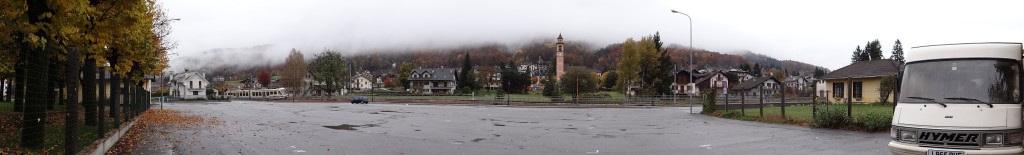 Drizzle and fog put paid to our plan to continue along the road to Locarno in Switzerland, which we’d been told was a great drive and the valley above was a beauty. We’d see nothing, and as the weather so grim, we knew were were going to be stuck in the van for a while so decided to use the time making tracks south. Out came the map, guidebooks and database of sleeping spots. Much deliberation and we decided to stick Acqui Terme into the sat nav, which showed as over a 3 hour drive, and stop somewhere along the way, wherever looked nice. As it turned out, once were past Lago Maggiore, nowhere along the Po valley looked nice, just a steady stream of run down towns, fields and the odd maniac driver. Luckily the roads were like stretched elastic, running dead straight between the towns, almost like the Romans built them, erm.