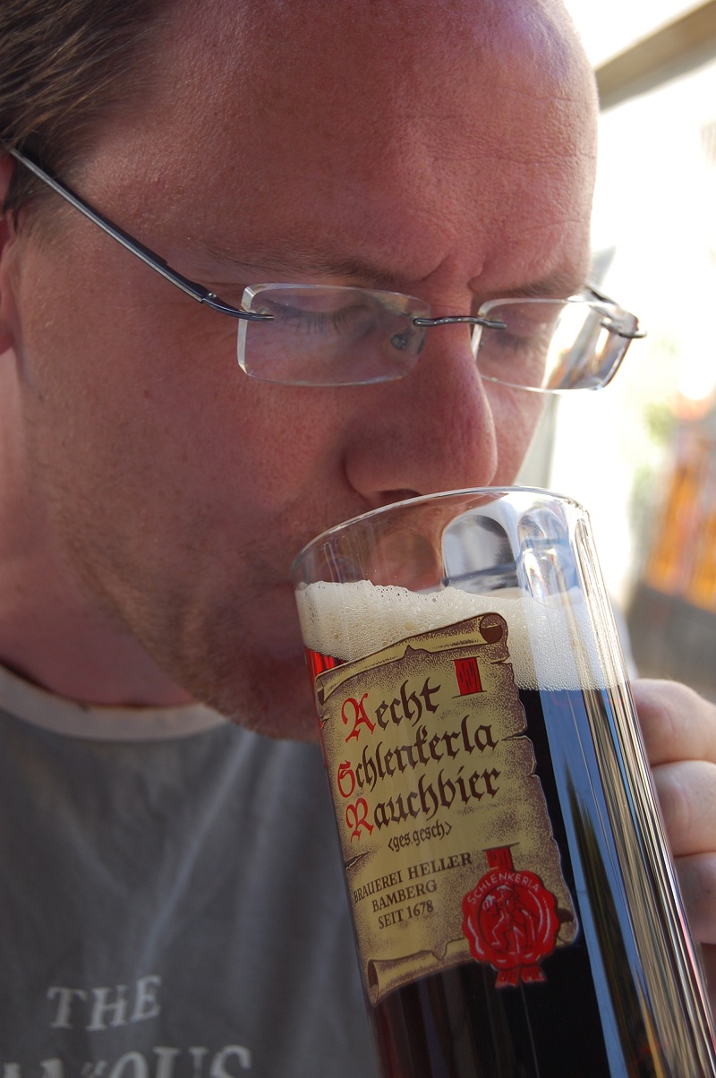 - The mild bacon taste of the initial swig of rauchbeer, a dark smoked beer they make here.