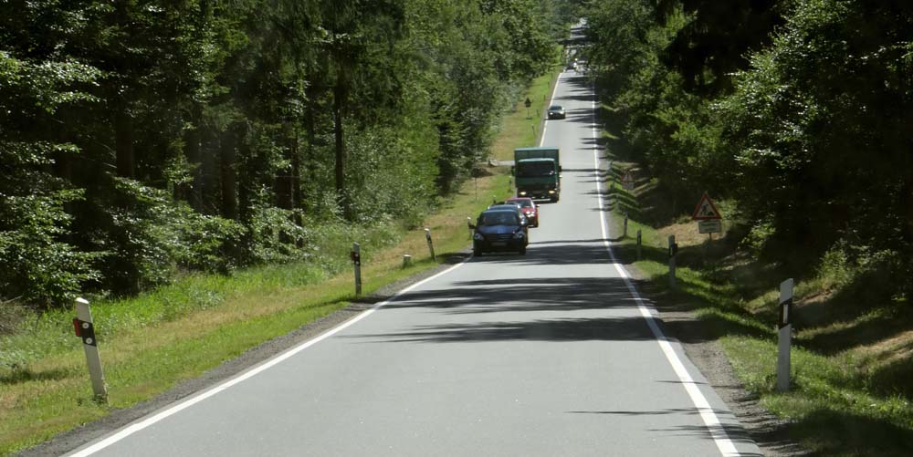 Back on the road we kept our elbows in as Dave passed big lorries on the narrow diversion road and were flagged down by a bloke driving in the opposite direction, we stopped and he reversed up to us and said something neither of us could understand, so he handed us his card. We read it, and reread it as it was all in German, then realised that he wanted to buy Dave! We laughed and thanked him but told him Dave was ‘Mein Haus’, he smiled and gestured for us to call him before driving off.