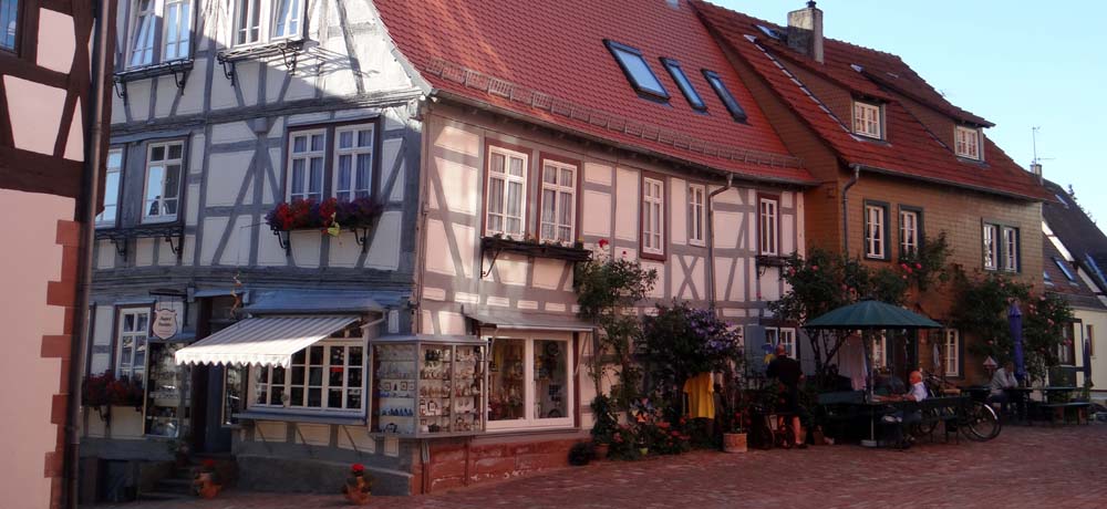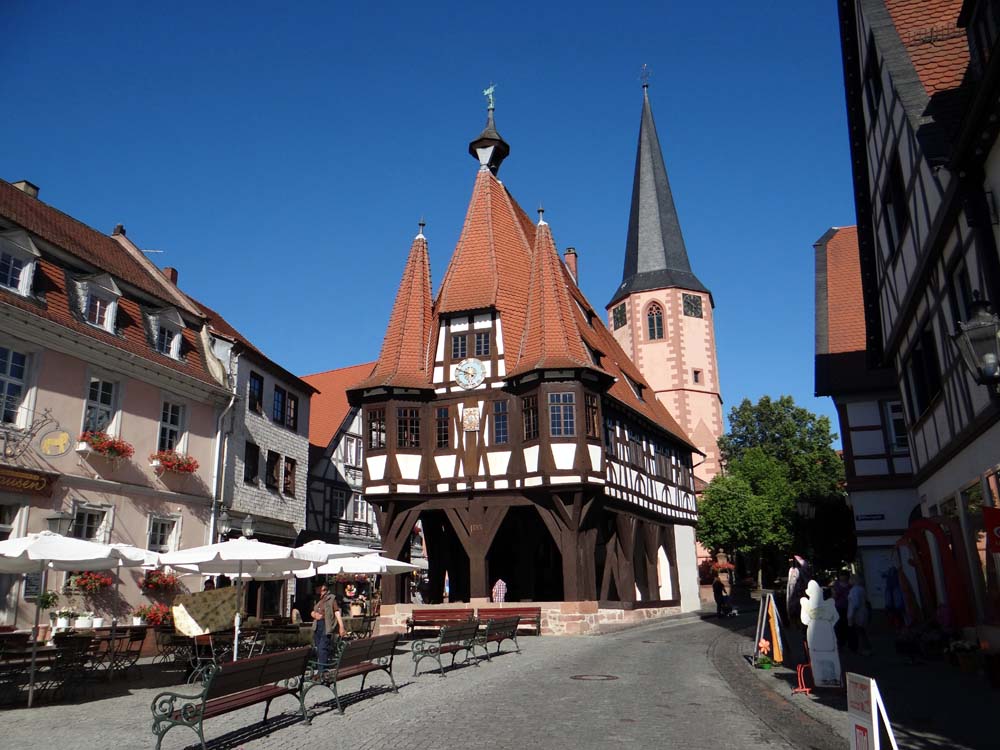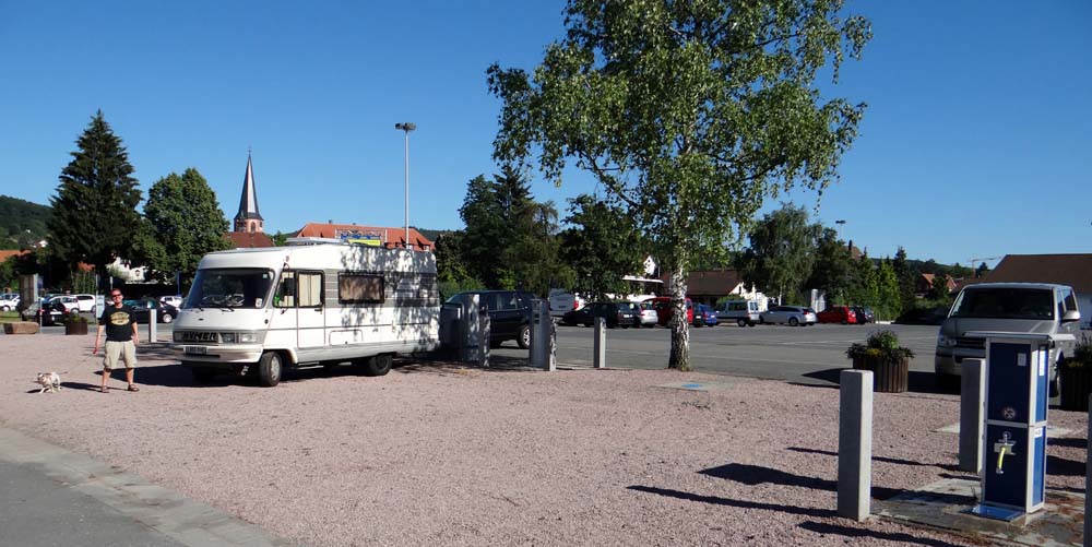 With our purchases instantly in use, we set off for Michelstadt. It’s a little under half way to Annweiler am Trifels, but it’s in the middle of a lot of green on our map and green is good – it means trees and shade. Our campingcar-infos database told us there was free parking at the market place, and if we didn’t like the look of the place there were a few other towns with free parking and stellplatz close by.