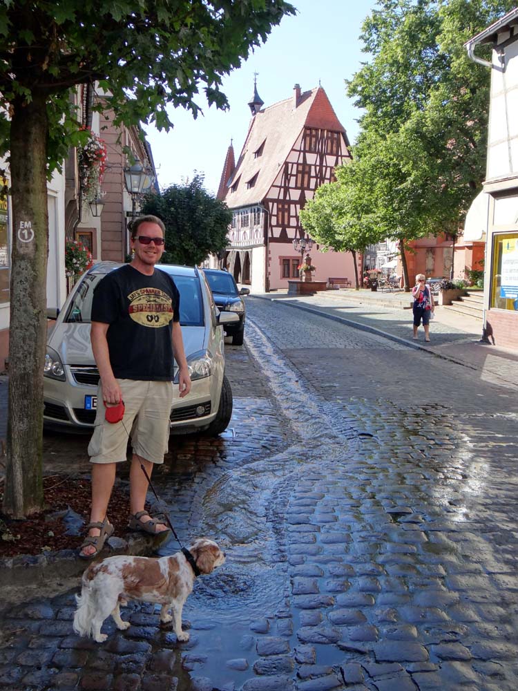 A beautiful, free stellplatz and you can see the church spire behind Dave – that’s how close we are to the town