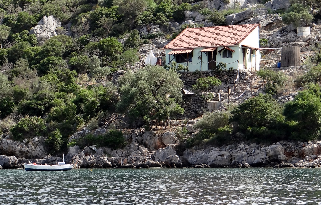 Dave the motorhome is a bit confused, we only travelled for about 20 minutes today but he feels like he is in Norway, sitting on the banks of a fjord next to a tiny village at Gerakas Port (N36.78569 E23.08665).
