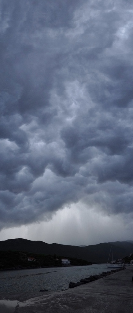 P.S. A massive storm has just broken over us, huge black clouds, lightning, roaring thunder echoing around the hills and torrential rain. We’ve had to get our internet dongle back into the van for fear it might get struck by the lightning which has just got a nearby boat. Charlie is hiding under the table and we’re in awe at how much water can come out of the sky in one go.