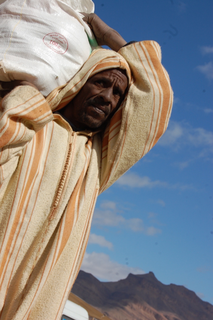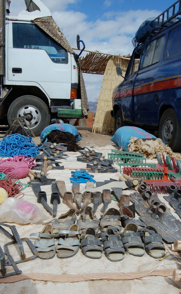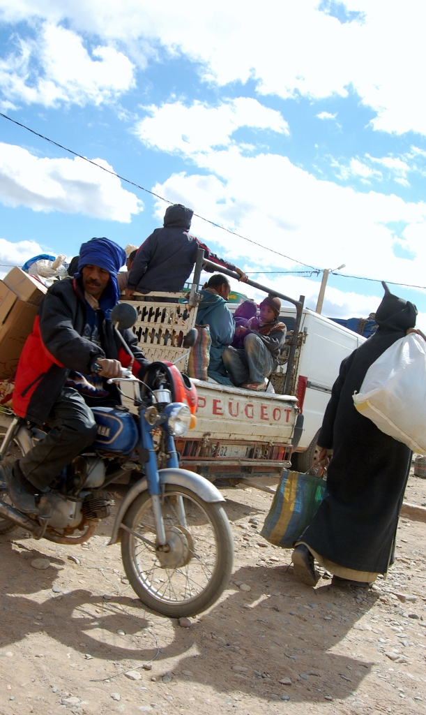 We all marvelled at how Moroccans don’t let anything go to waste. You could get various water carriers made from old tyres, woven donkey baskets and tins remodeled from various other metal objects. Imagine a normal Sunday car boot sale, thrown in a about 50 donkeys, 100 mopeds, no order to the stalls, dusty wind and a general air of not knowing what’s going on and you’d be about right. We walked around for a while, Chris was loving the hardware type stalls, but the only thing we bought was some fresh popcorn and caramelised peanuts (all fresh and warm) for about 90p. J did the battle with the lack of queue or process while I took some snaps of locals and what was going on around us.