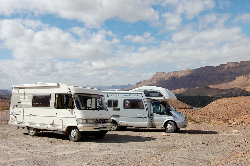 After the souk we drove through some dramatic scenery along the Vallee du Draa to Zagora where we’d got the co-ordinates for a campsite. We weren’t sure if satnav was playing us for fools again as the road to the site was stony and lined with very run down buildings, but we saw another European looking couple walking along with shopping bags and carried on – that’s generally the best way to be sure you’re on the right road for a campsite.