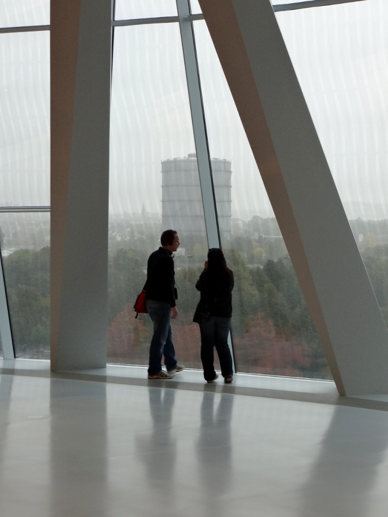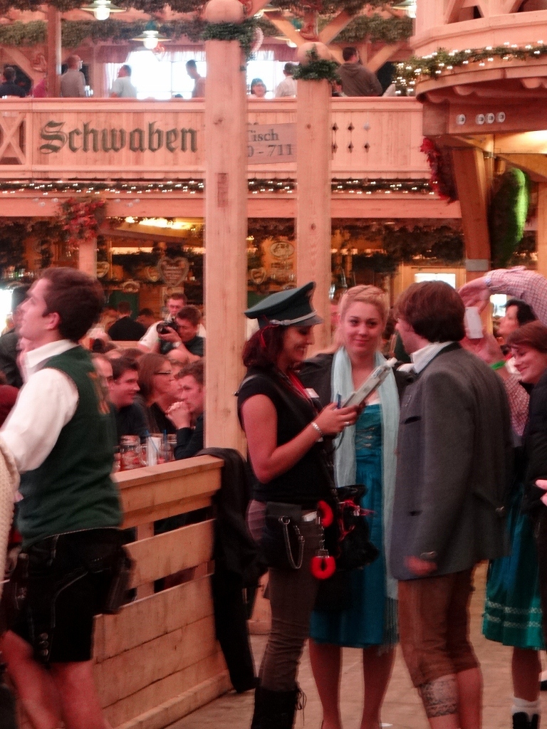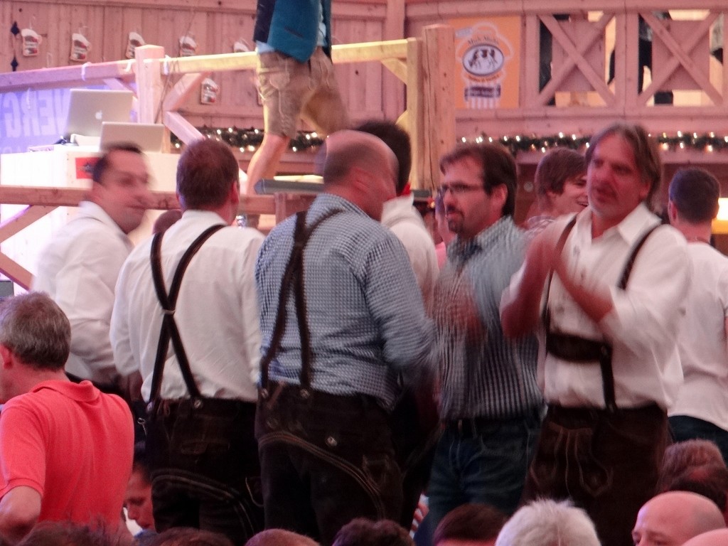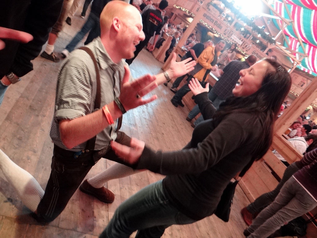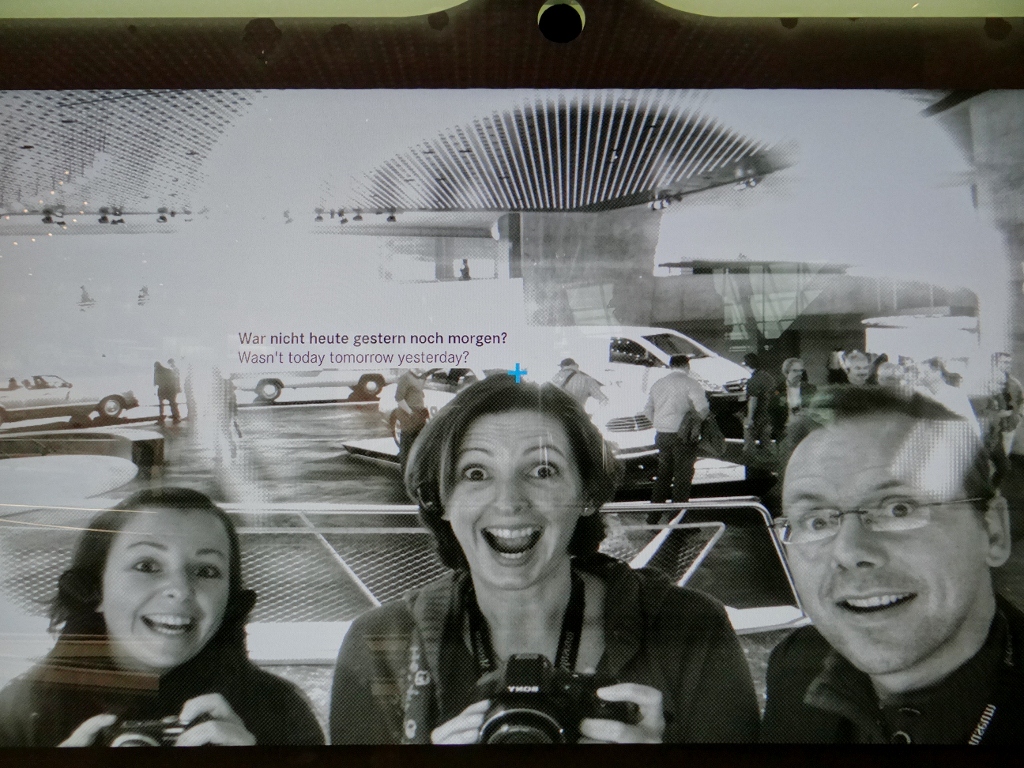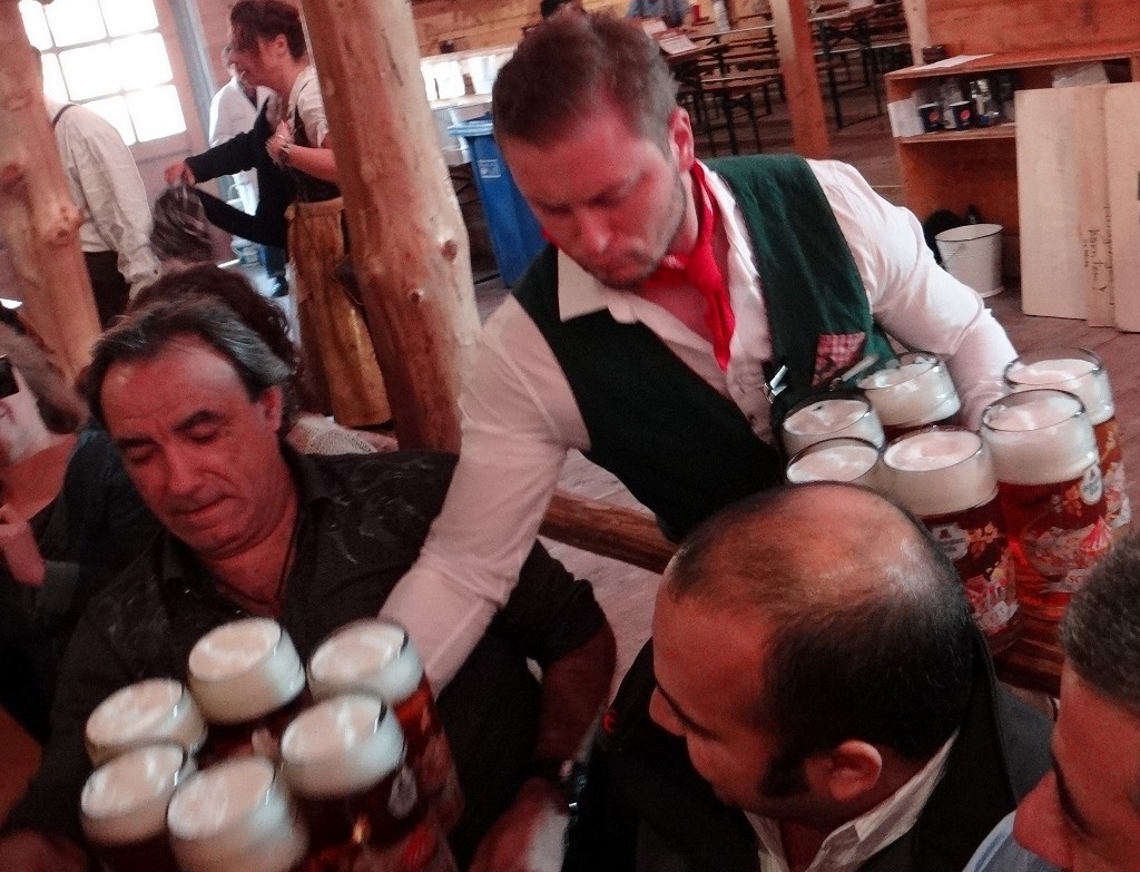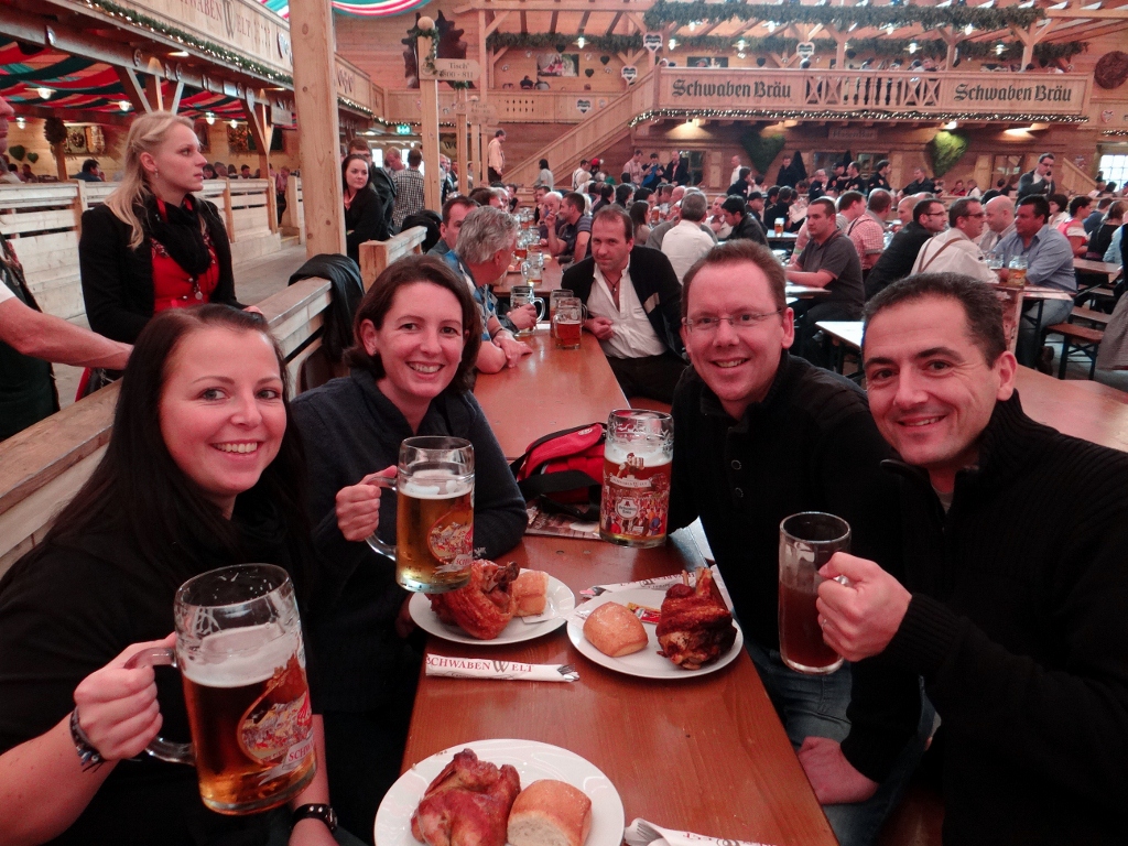 We chose the Mercedes museum over the Porsche one because it’s situated right next to the Volksfest site, which was a good job as it was hammering down with rain as we nipped between the two. Fortunately we managed to get into one of several huge drinking halls where a band was playing and lederhosen and dirndl clad people were already dancing on the seats. I asked for a small beer, I couldn’t hear the reply, but it looks like drinks don’t come small in these places! Along with our favourite pigs knuckle we drank and ate well listening to the band and watching the late afternoon drinking session get into full swing.