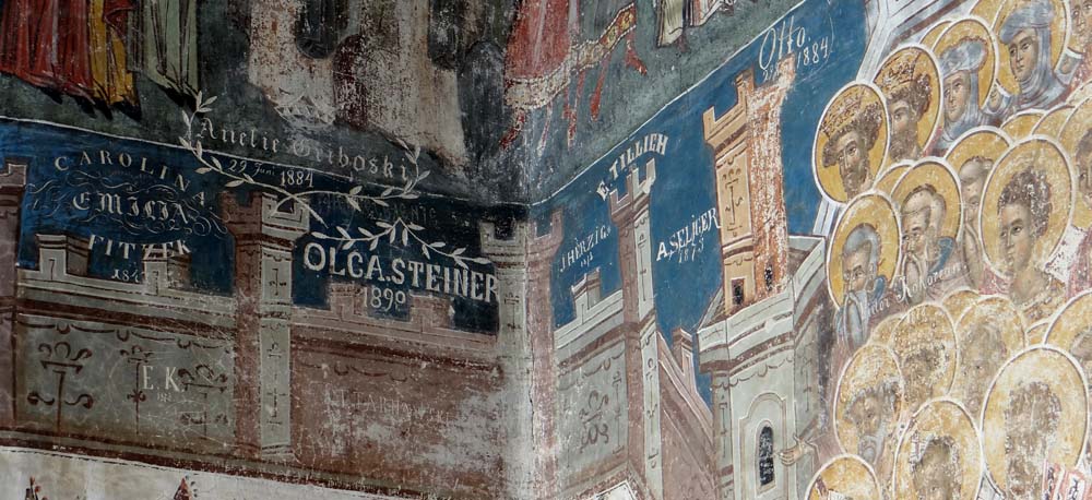 A bit of history about the place – Stephen the Great, the King of Moldavia from 1457 until his death in 1504, fought 36 battles against the Ottoman Empire, winning 34 of them. He was very religious and built churches after many victories. Stephen’s illegitimate son, Petru Rareș, who also ruled Moldavia had the monastery built in 1532. He was also the chap who promoted a new vision for Bukovina churches, commissioning artists to cover the interiors and exteriors with elaborate frescoes containing portraits of saints and prophets along with scenes from the life of Jesus.