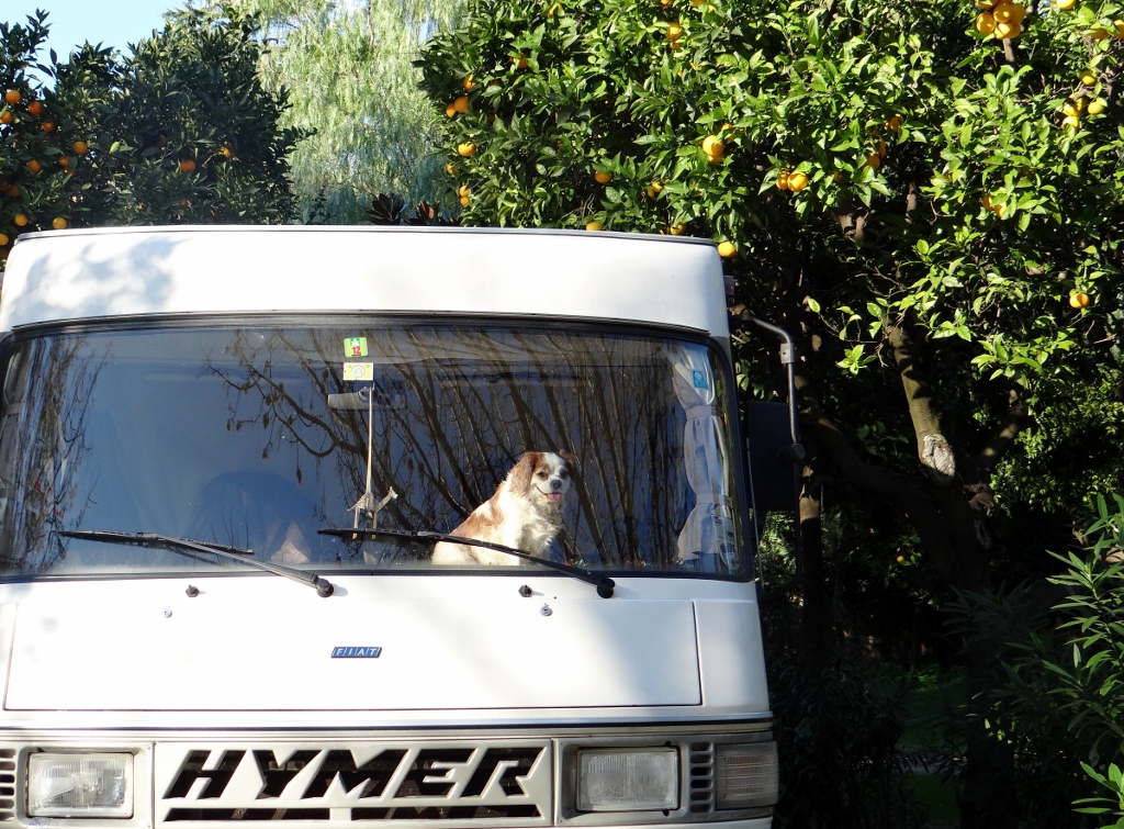 Our database had numerous people complaining about the campsite saying they only put up with it because of its location. We had no problems and found ourselves a space among the orange trees; heavy with fruit. The receptionist told us we’re OK to eat them, they’re falling to the ground and bursting, so we have several sitting in Dave warming up ready to be squeezed for juice.