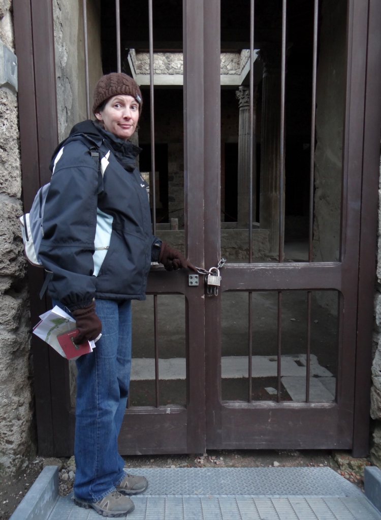 Pompeii has always been on my to see list ever since I’d learned about it at school. I was really happy wandering around the ancient streets, it was so easy to imagine living all those years ago. However I was a bit disappointed that so much of it was sealed off. Buildings raved about in guidebooks were padlocked shut and no entry signs were everywhere, this spoiled not only our enjoyment but that of others too who I overheard complaining about the audio guide telling them to go into places that were padlocked shut. I know its constantly undergoing restoration, but I was very surprised at just how much of it was closed to the public. I thought it must be because it’s December, but Jay’s been on the internet and tells me it’s because there’s no money to guard it all and stop people graffiting or taking bits of the place. This could also be part of the reason why so many items have also been removed and are at a museum in Naples – we knew this before we went in, but it’s still a shame that they couldn’t have been left in situ.