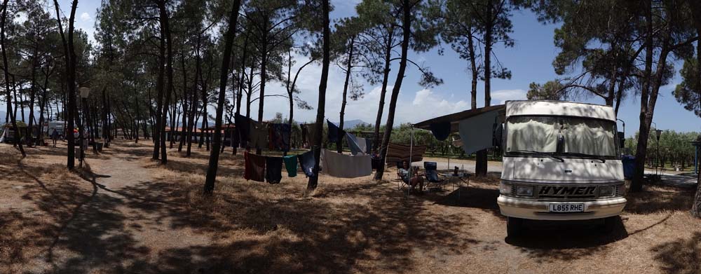 Dave the motorhome’s awning’s make a rare appearance, spread open to fend off the rays of sunshine which make it though the fir trees above us. We remain ensconced in luxury at Camping Meltemi. One of the campsite staff has just come over to ask if we want to order some bread for tomorrow (cue arm’s raised from me in excitement, not sure why). There’s been none today as it’s Easter Monday here in Orthodox land, everyone’s down the beach.