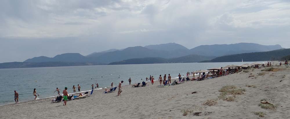 Mavrovouni Beach with a backdrop of the magnificent Mani. The photo’s a bit of a cheat, as this is the Ocean Bar next door to us, the only section of a HUGE long stretch of foot-friendly-ish pebble beach.