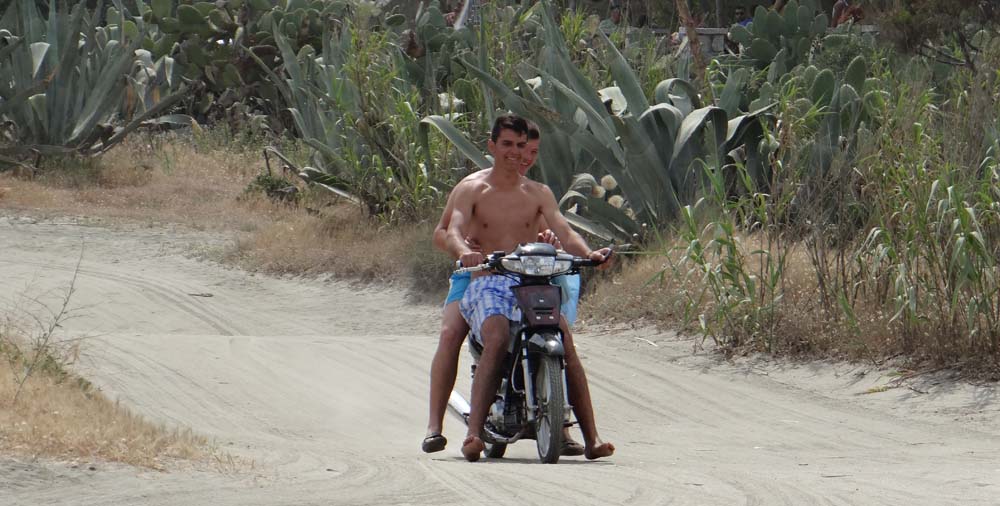 We love our life. Some folks hate campsites with a vengeance, some swear by ’em. For us we like to mix it up a bit. Campsites are like little ports for us, in countries where we’re allowed to free-camp, places to nip into from time to time to fully chill out. This one’s a relaxed spot in early May, just a few other motorhomes and the odd tent here, all but one are German, I wonder why. One couple have a Laser dingy/boat-thingy (I know nothing of these things – and am in awe of anything with ropes) which they’ve taken out the past couple of days, wheeling it down the beach on a trailer. They usually race a two-person boat in regattas all over the world. Today the chap pointed at the clouds above the mountains, a good sign, they meant more wind. It did pick up a little, a few wind surfers made it out too, another balancing act which defies belief for me.