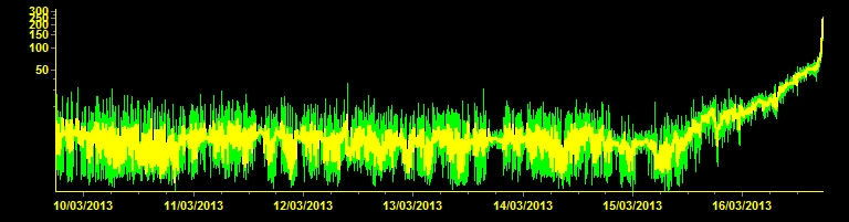 Taking the computer with me I stood outside in the middle of the site staring at the dark blackness of cloud, our friendly Italian neighbour pointed out where the summit should be, but alas the cloud never shifted an inch. Wrapped up against the cold I watched on the webcam as the lava fountains grew in height and intensity, desperately hoping one of them would pop up above the cloud. They reached a kilometre high, but the cloud was higher than that.