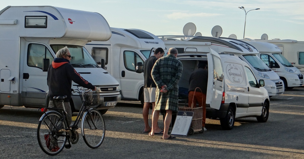This place is so chilled out and the weather has been non-stop sunshine; it was just what we needed. For €8 a night we get electricity, wifi, access to a service point for water etc, loos and a beach within spitting distance, there is even a boulangerie van that stops by our door every morning at 8.30am with fresh baguettes.