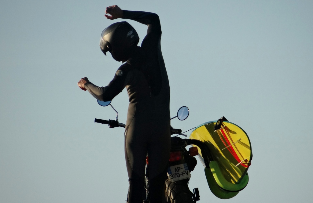 Zagan hasn’t moved from his parking spot in the aire at Capbreton (N43.63693 W1.44708), the neighbouring vans coming and going with the days. We’ve wandered around the town, had a meal out, walked miles up and down the beach, watched the sun set over Spain, read, got the TV working, realised once again why we don’t usually watch TV, Skyped and taken about a million photos of all the surfers here. It seems to be a bit of a Mecca for them and at times the sea is almost a surfer soup.