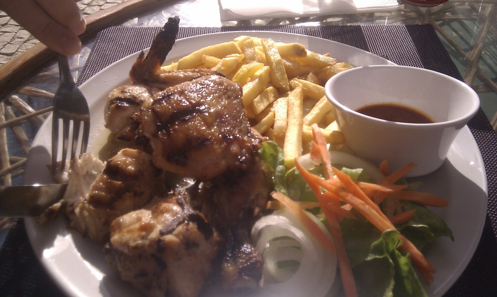 - I had some most excellent Chicken Piri-Piri (bascially roast chicken with a spicy sauce and chips). €7.50, not bad for a tourist place.