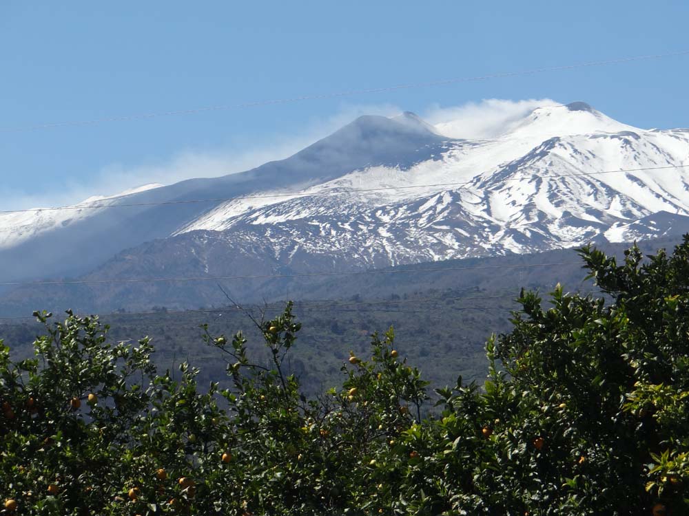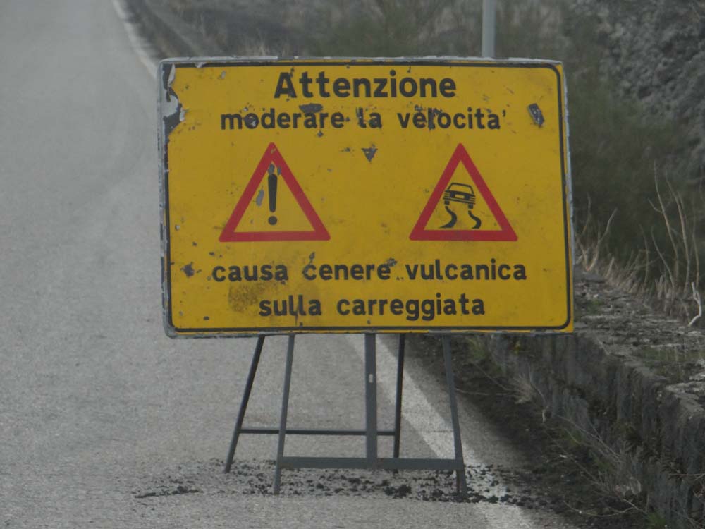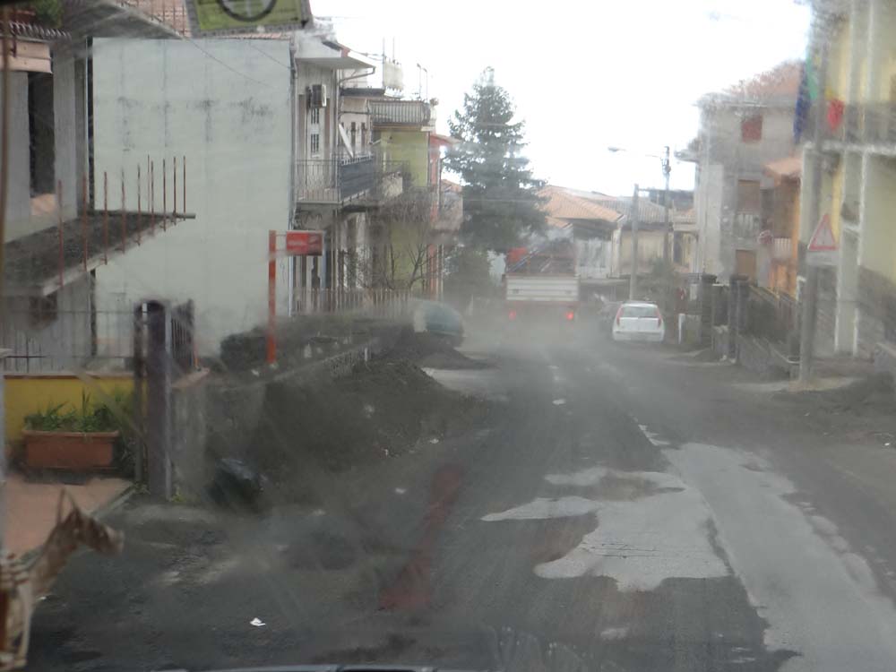 Our last view of Etna’s latest blast of ash, from a Lidl car park. Beggar not in shot, busy harassing an old woman.