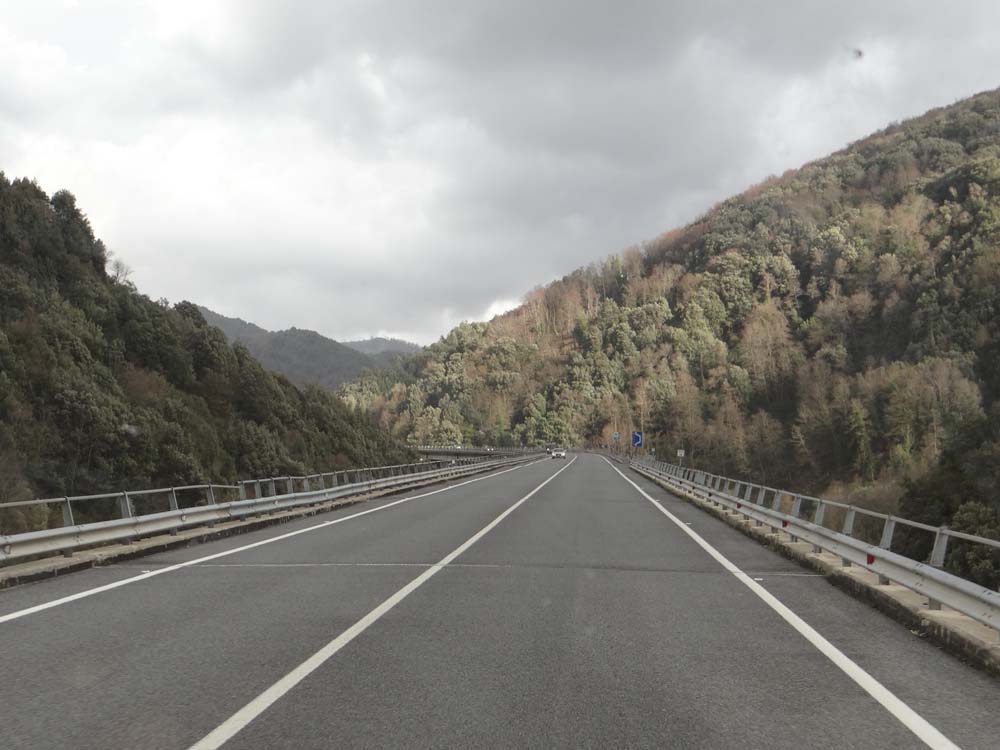 From the port the road quickly dropped us on free motorway. The first 30 or 40km are roadworks, the same ones which had been packed with holiday traffic as we followed them south into Sicily just before Xmas. Although roads in Southern Italy are generally pretty rough and ready, the engineering and funding involved in simply getting them there in the first place is breathtaking. ‘Landscape says no’ is how I’d describe the problem of laying out a stretch of wide flat tarmac here. It’s all ridges, rivers and gorges, roads had to sit high on epic concrete stilts, driving for miles through tunnel after tunnel. The P5 which makes up the ‘sandal strap’ in the road arrangement is some feat of engineering. Italian road builders: you may be dog-slow, but I for one salute you.