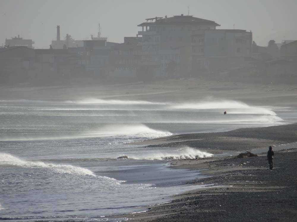 Dave the motorhome is being rather heavy-handedly buffeted by palm tree-bending winds, parked alongside a sea being blown apart like sand in Marina di Gioiosa Ionica (N38.30241 E16.33895). The wind’s a beast down here in March in the middle of Med! Last night up on Etna we had to decamp at midnight. Fearing something important might get ripped off our home, we edged Dave up against a dry-built lava stone wall, which worked a treat. Maybe Etna was wanting to teach us a lesson for dodging the €10 car park fee?