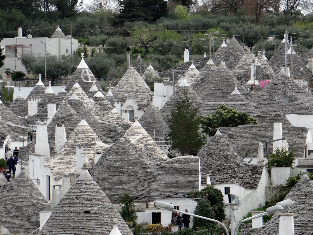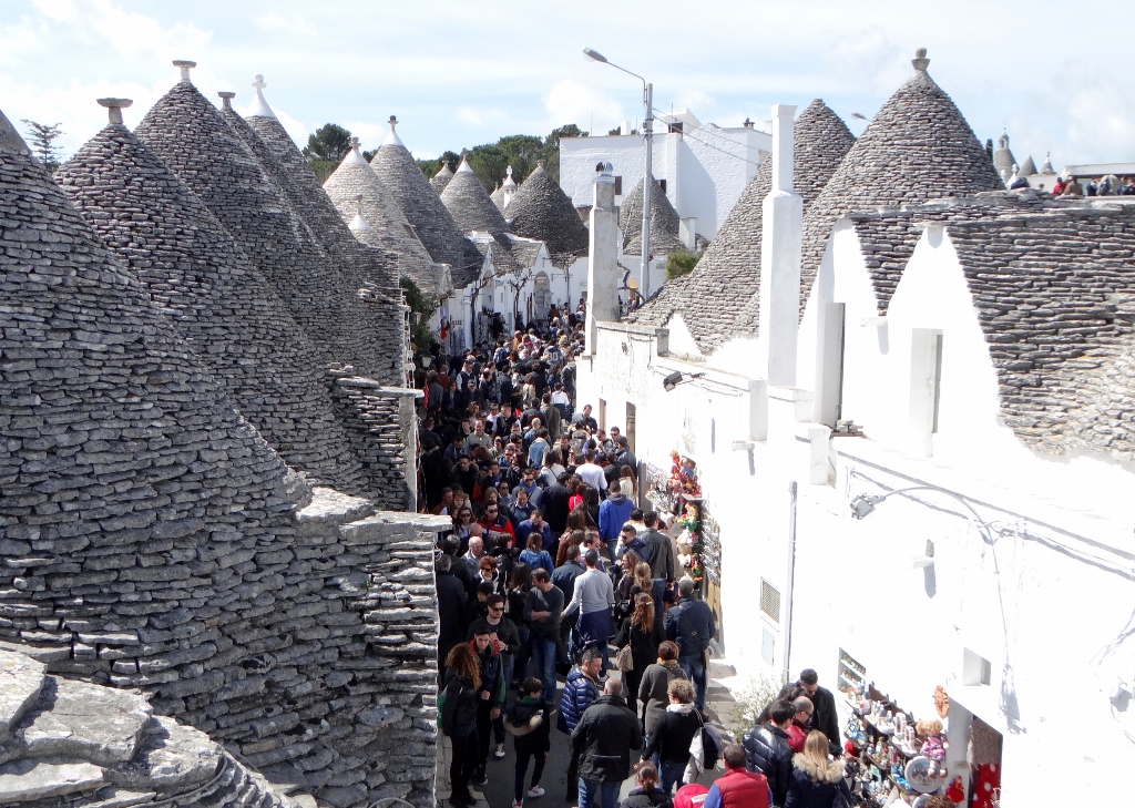 We joined in with the flow of people wandering down the narrow streets between the conical shaped houses. Here there are over 1500 in one area, so if you want to see a Trulli house, this is the place to be.